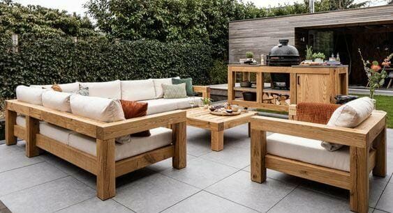 ODUNS Pandora Bahçe Balkon Teras Ahşap Köşe ve Tekli Koltuk Takımı